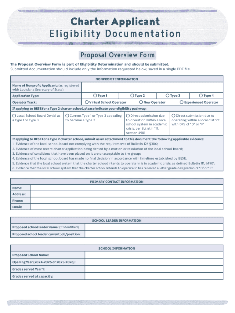 The Proposal Overview Form is part of Eligibility Determination and should be submitted.
