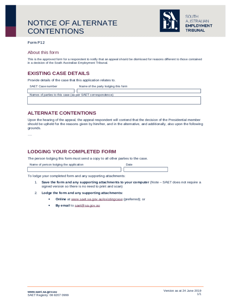 What is Notice of Alternate Contentions. P12 Form?