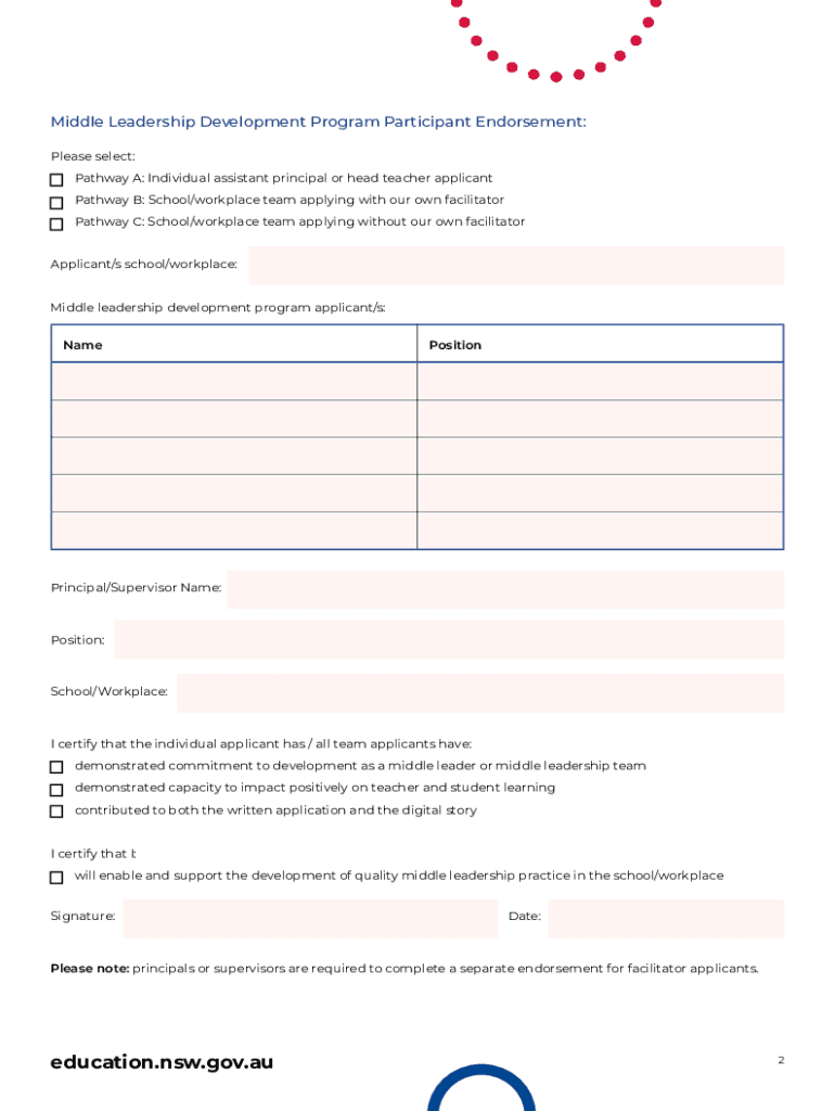 NSW Department of Education NSW School Leadership InstituteMiddle Leadership Development Program The Middle Leadership Development Program will build the capacity of assistant principals and head