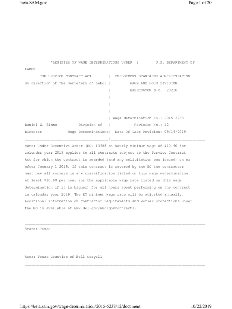 Beta.SAM.gov Page 1 of 20\” REGISTER OF WAGE DETERMINATIONS UNDER|U.S. DEPARTMENT LABOR THE SERVICE CONTRACT ACT|By direction of the Secretary of Labor | |EMPLOYMENT STANDARDS ADMINISTRATION WAGE