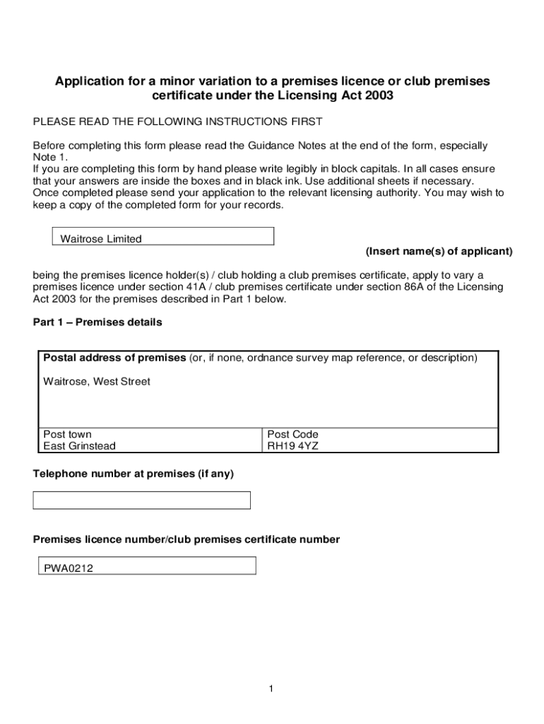 Get the free Apply for a minor variation to a Premises Licence