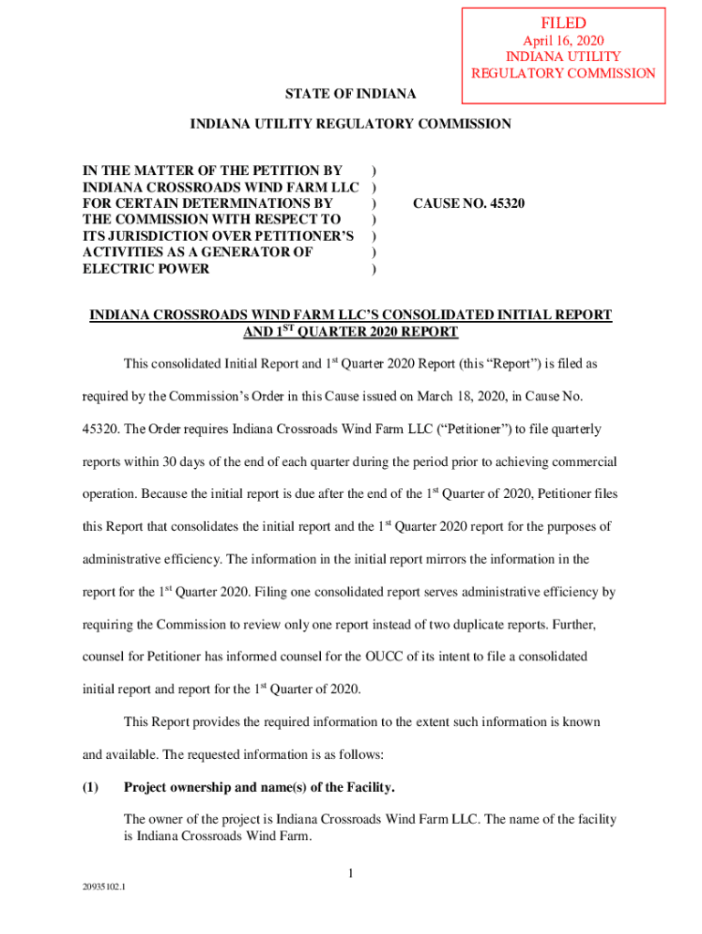 FILED April 16, 2020 INDIANA UTILITY REGULATORY COMMISSIONSTATE OF INDIANA UTILITY REGULATORY COMMISSION IN THE MATTER OF THE PETITION BY INDIANA CROSSROADS WIND FARM LLC FOR CERTAIN DETERMINATIONS