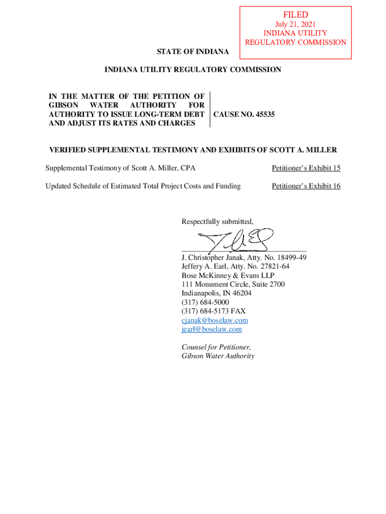 FILED July 21, 2021, INDIANA UTILITY REGULATORY COMMISSIONSTATE OF INDIANA UTILITY REGULATORY COMMISSIONING THE MATTER OF THE PETITION OF GIBSON WATER AUTHORITY FOR AUTHORITY TO ISSUE LONGER DEBT