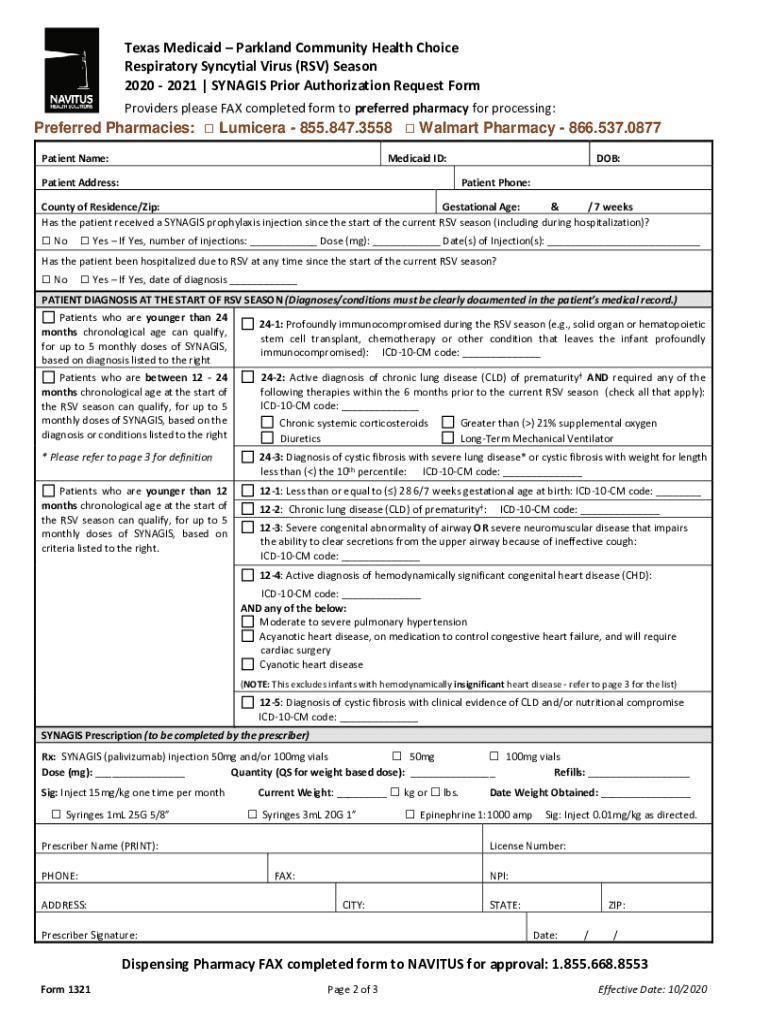 Texas Medicaid Parkland Community Health Choice Respiratory Synovial Virus (RSV) Season 2020 2021 | Prior Authorization Request Form About Human Respiratory Synovial Virus (RSV) causes mild symptoms