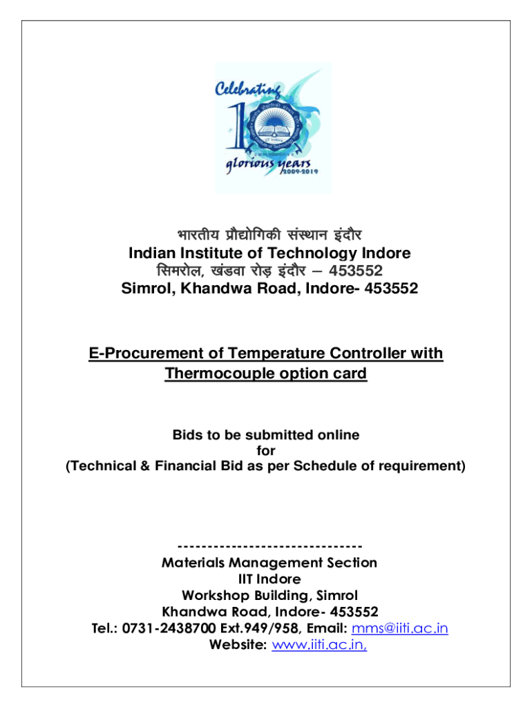 Hikers; inks|sixth laLFkku banks Indian Institute of Technology Indore flecks] [amok KSM+ banks & 453552 Symbol, Chandra Road, Indore 453552EProcurement of Temperature Controller with Thermocouple