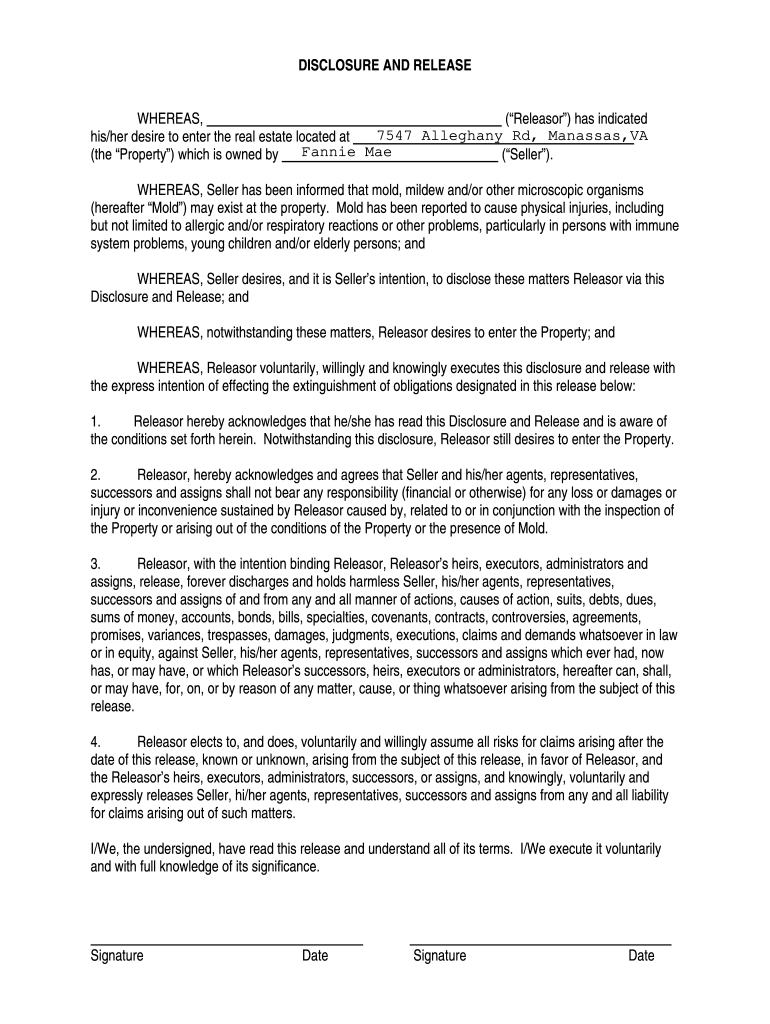 Fannie Mae Disclosure and Release free printable template