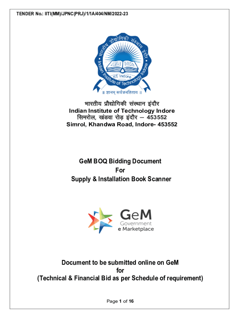 TENDER No.: IIT(MM)/PNC(PRO)/1/1A/404/NM/202223Hkkjrh; inks|sixth laLFkku banks