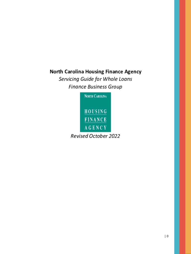 North Carolina Housing Finance Agency Servicing Guide for Whole Loans Finance Business GroupRevised October 2022|0Servicing Guide Table of Contents Note: The North Carolina Housing Finance Agencies