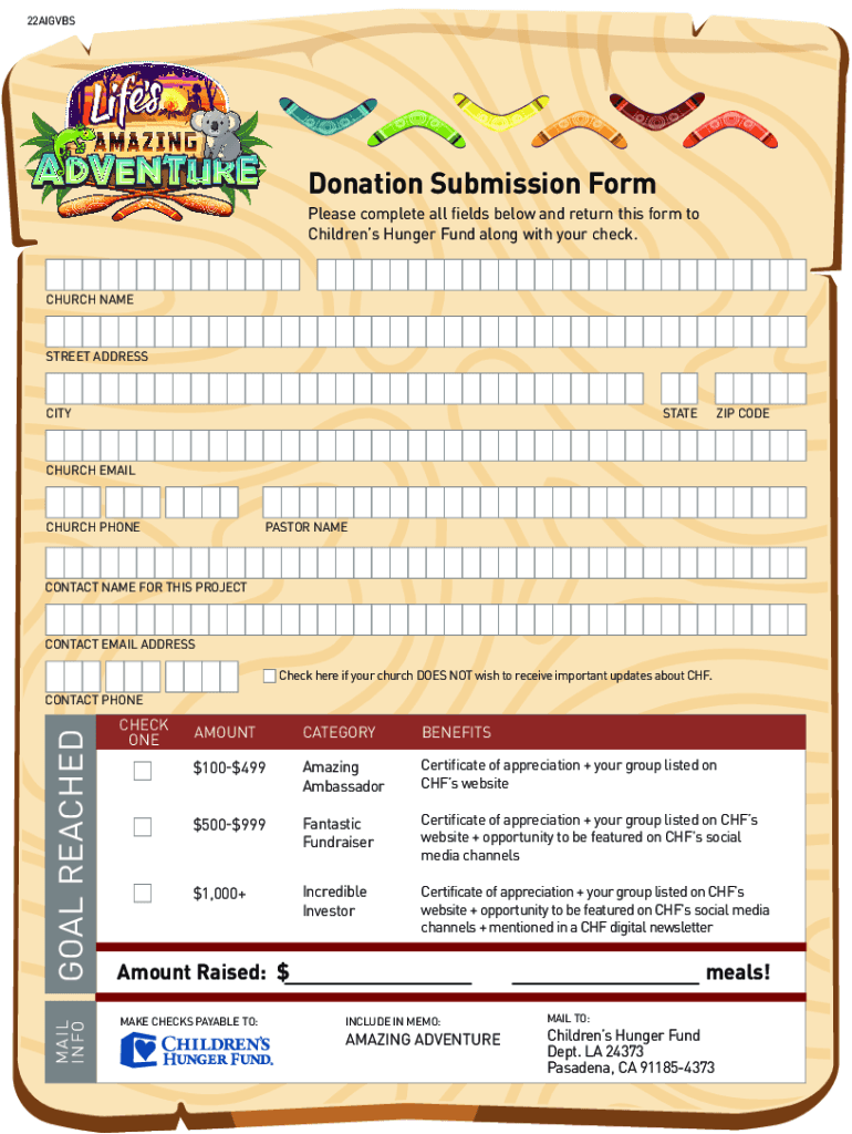 Children's Hunger Fund along with your check. CHURCH BACKSTREET ADDRESSCITYSTATEZIP CODECHURCH EMAILCHURCH