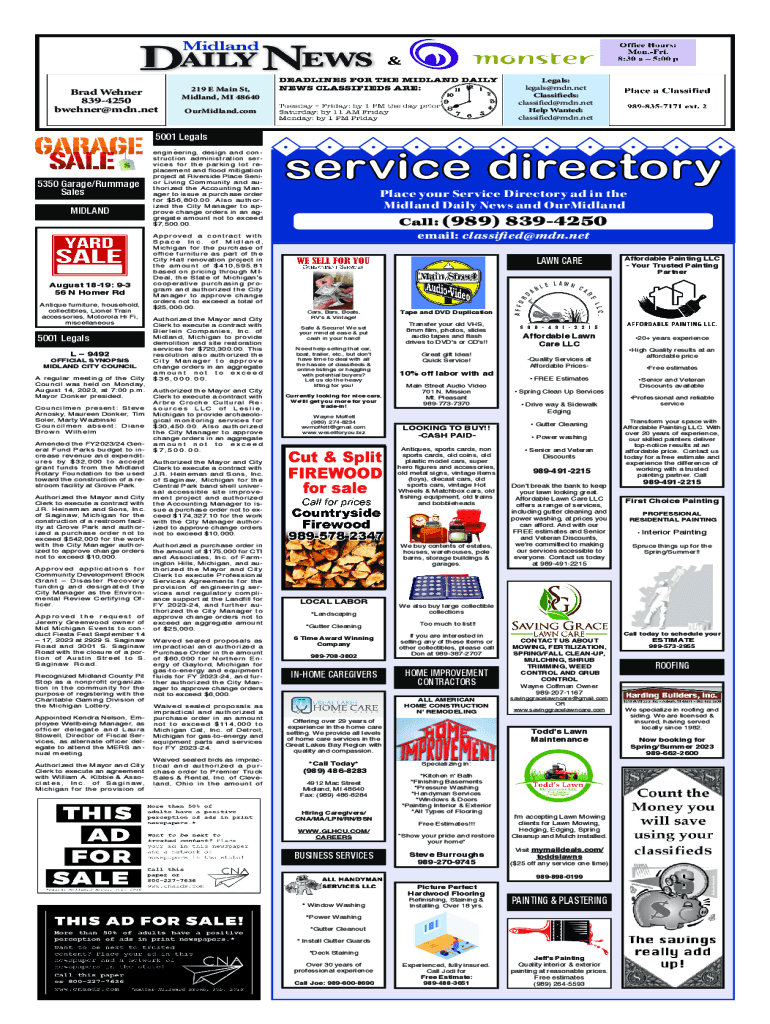 Bwehner@mdn.net Brad Wehner8394250 Nikki Postal 8394235 bwehner@mdn.net nikki.dostal@mdn.netlegals@mdn.net legals@mdn.net Classifieds: Classifieclassified@mdn.net.net Help Wanted: Wanted: classified@mdn.net