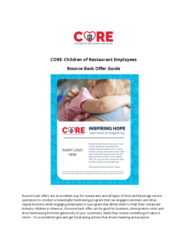 CORE: Children of Restaurant Employees Bounce Back Offer GuideBounce back offers are an excellent way for restaurants and all types of food and beverage service operations to conduct a meaningful