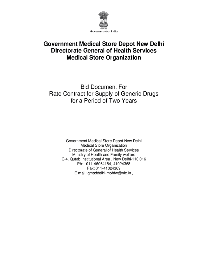 Government Medical Store Depot New Delhi Directorate General of Health Services Medical Store Organization Document For Rate Contract for Supply of Generic Drugs for a Period of Two Misgovernment