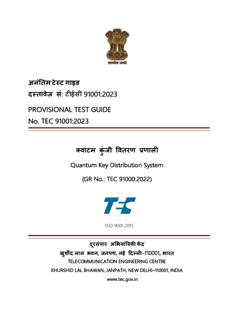 91001:2023 PROVISIONAL TEST GUIDE No. TEC 91001:2023 Quantum Key Distribution System (GR No.: TEC 91000:2022)ISO 9001:2015 , 110001, TELECOMMUNICATION.