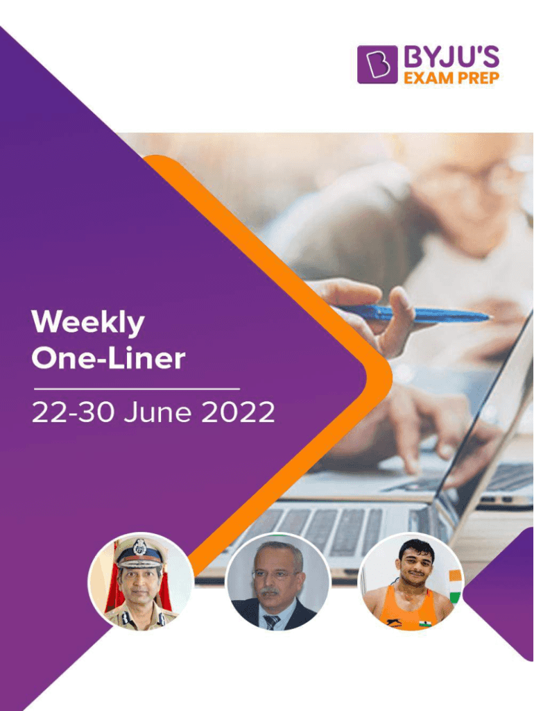 1Weekly One liner Updates22 30th June 2022 Dear readers, Weekly One Liners Update is a collection of important news and events that occurred in the fourth week (2230th) of June 2022. This file is