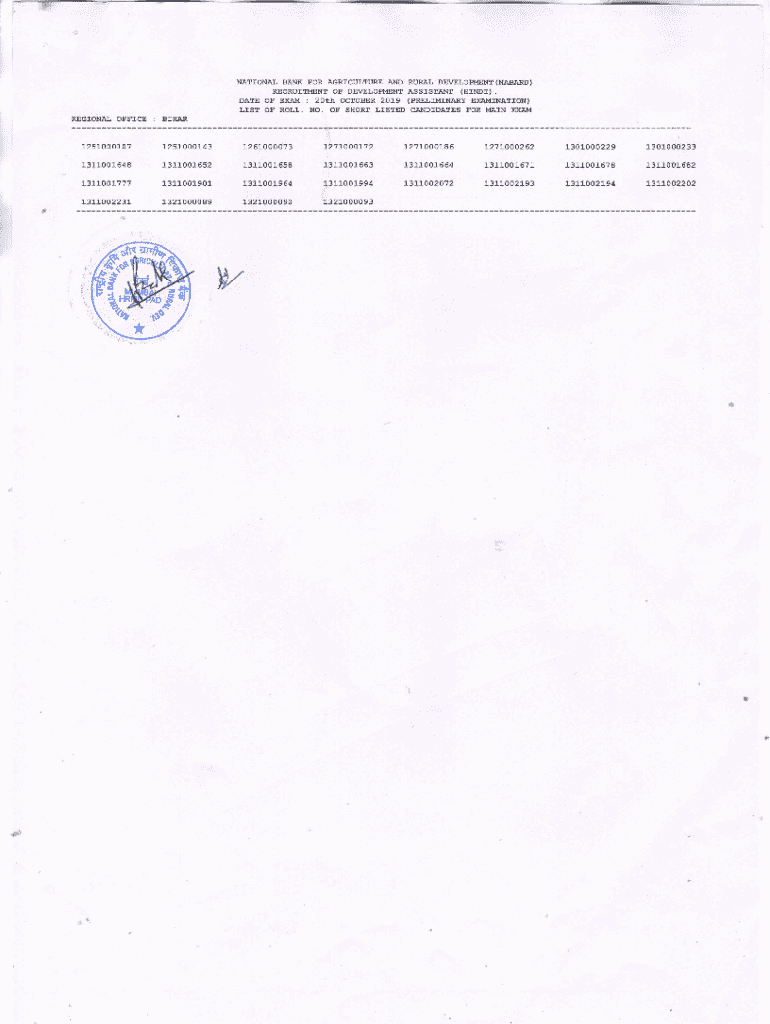 NATIONAL. BANK FOR AFRICA.TURF AND RURAL DEVELOPMENT (NAB ARD) RECRUITMENT OF DEVELOPMENT ASSISTANT (HINDI). DATE OF EXAM : 20th OCTOBER 2019 (PRELIMINARY EXAMINATION) LIST OF R0I. L. NO. OF SHORT