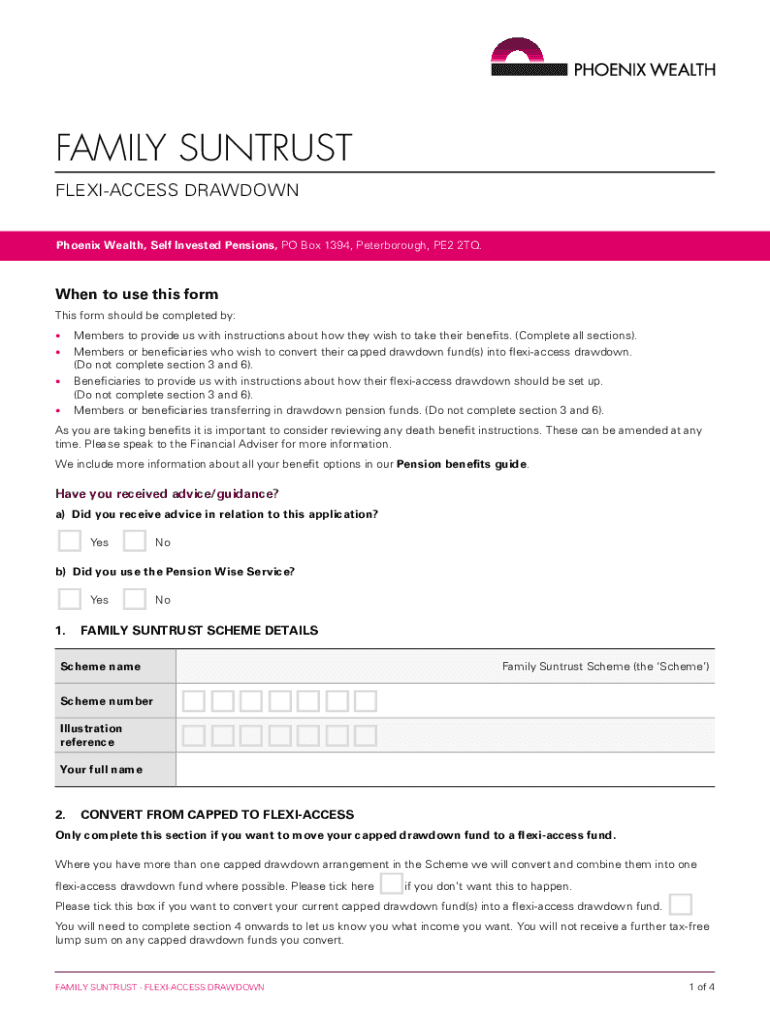 FAMILY ENTRUST FLEXIACCESS DRAWDOWN Phoenix Wealth, Self Invested Pensions, PO Box 1394, Peterborough, PE2 2TQ. When to use this form should be completed by: Members to provide us with instructions