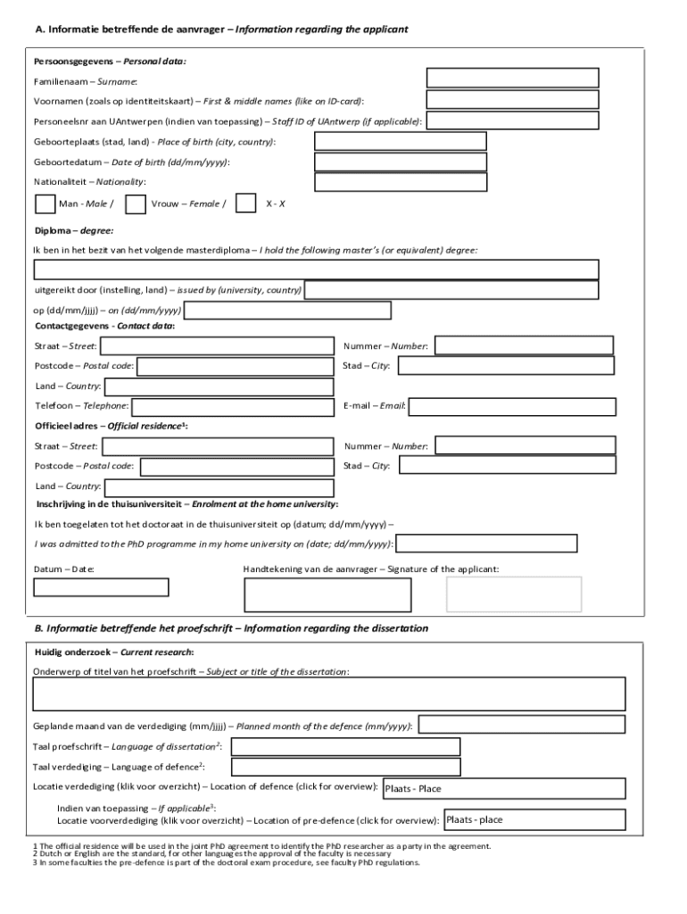 Get the free inkomend dubbel-/ meervoudig doctoraat Application form: ...