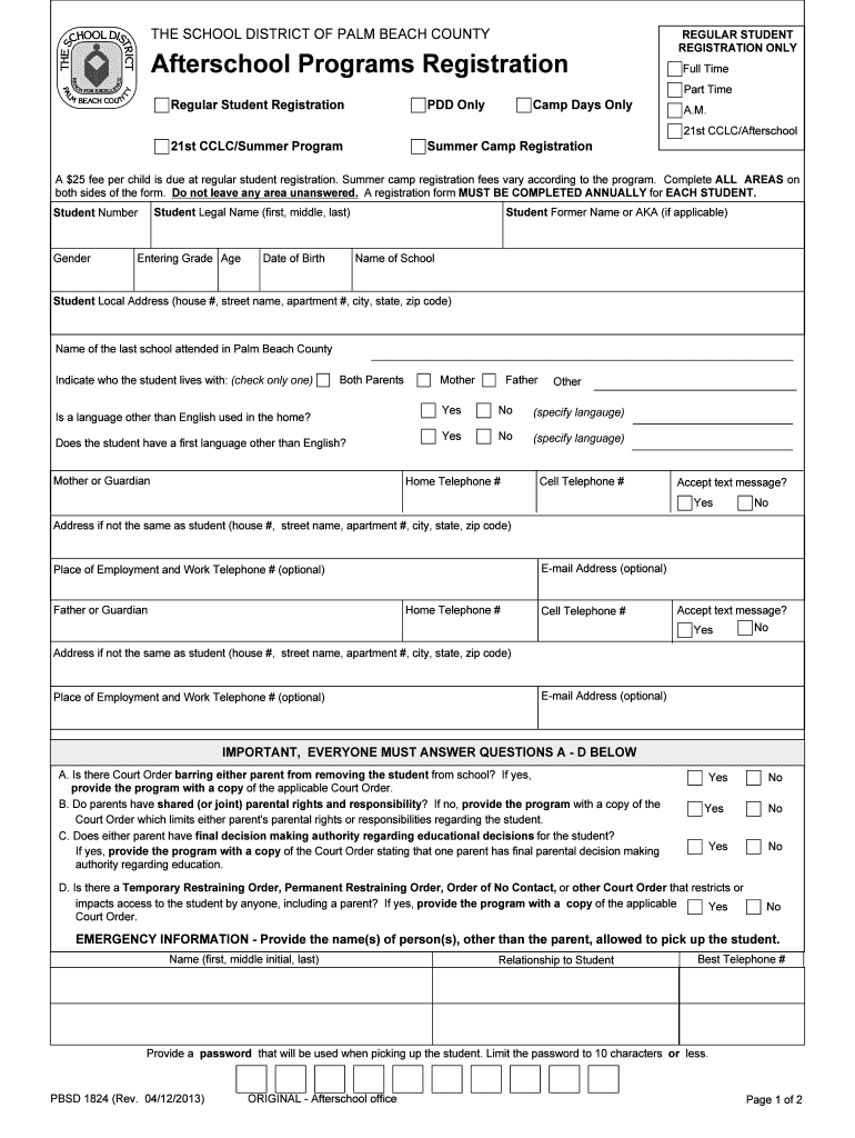Typically, the Palm Beach County Student Registration Form will require supporting documents such as proof of residency, student's birth certificate, and any relevant health information, particularly for afterschool programs.