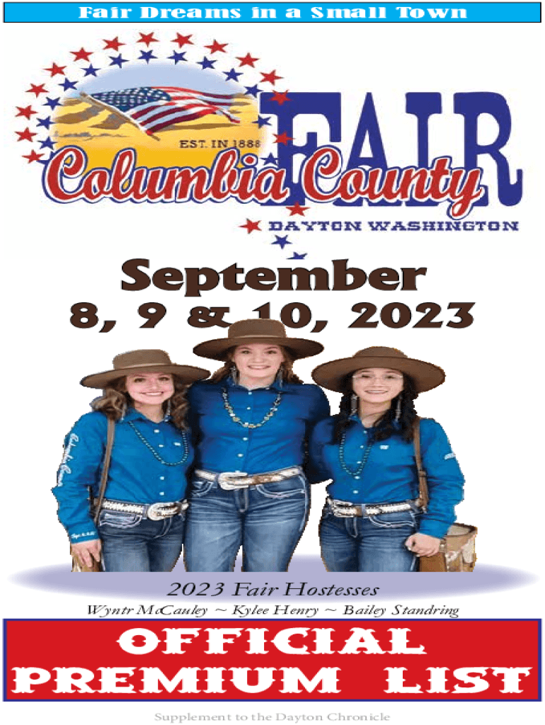 Fair Dreams in a Small TownSeptember8, 9 & 10, 20232023 Fair HostessesWyntr McCauley Kyle Henry Bailey StandringOFFICIAL