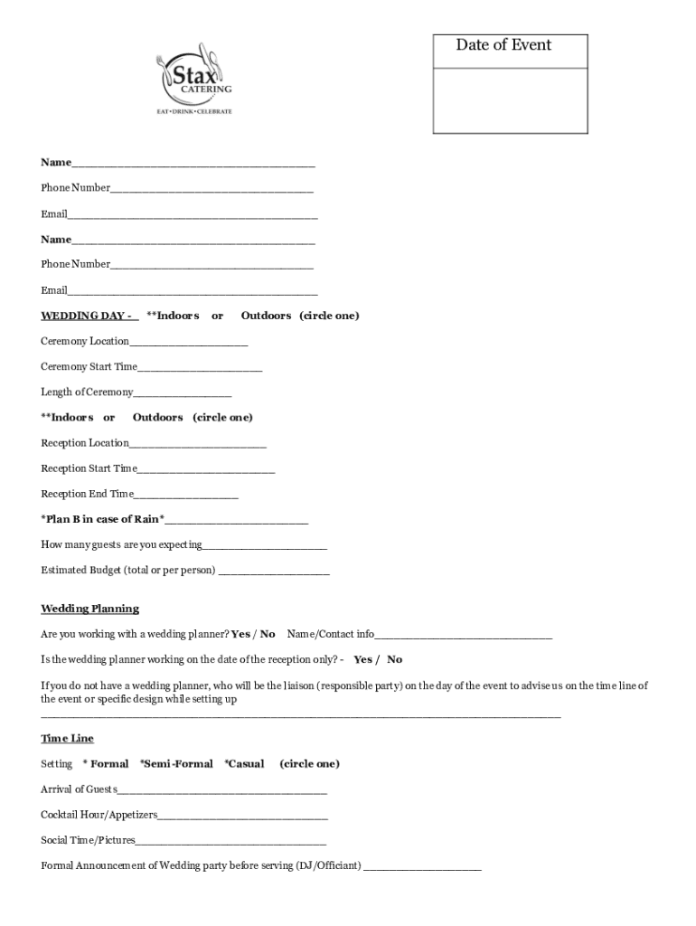 WEDDING DAY **IndoorsorOutdoors (circle one)Ceremony Location___