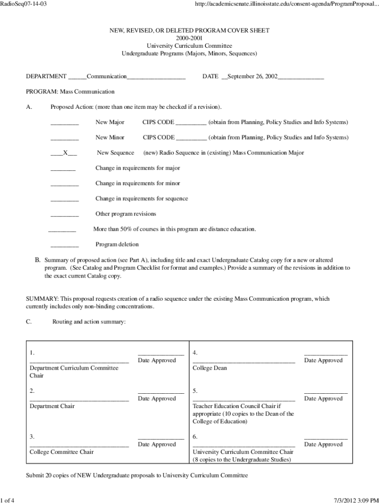 RadioSeq0714031 of 4http://academicsenate.illinoisstate.edu/consentagenda/ProgramProposal...NEW, REVISED, OR DELETED PROGRAM COVER SHEET 20002001 University Curriculum Committee Undergraduate Programs