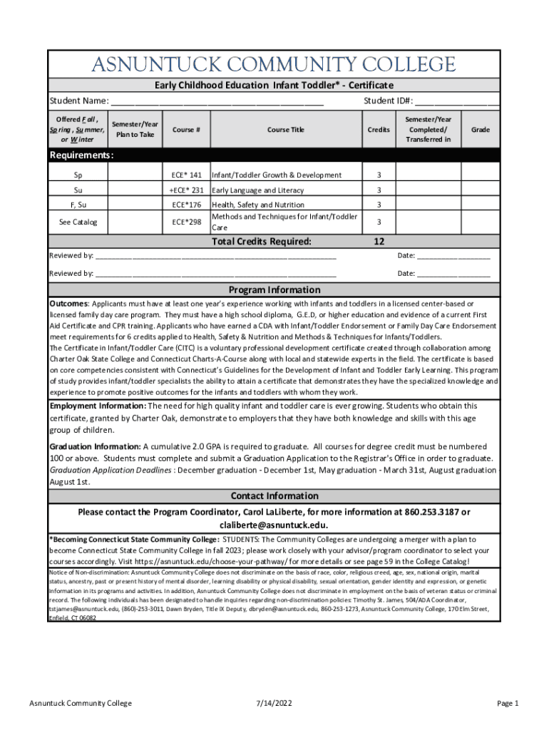 Get the free Early Childhood Education Infant Toddler* - Certificate