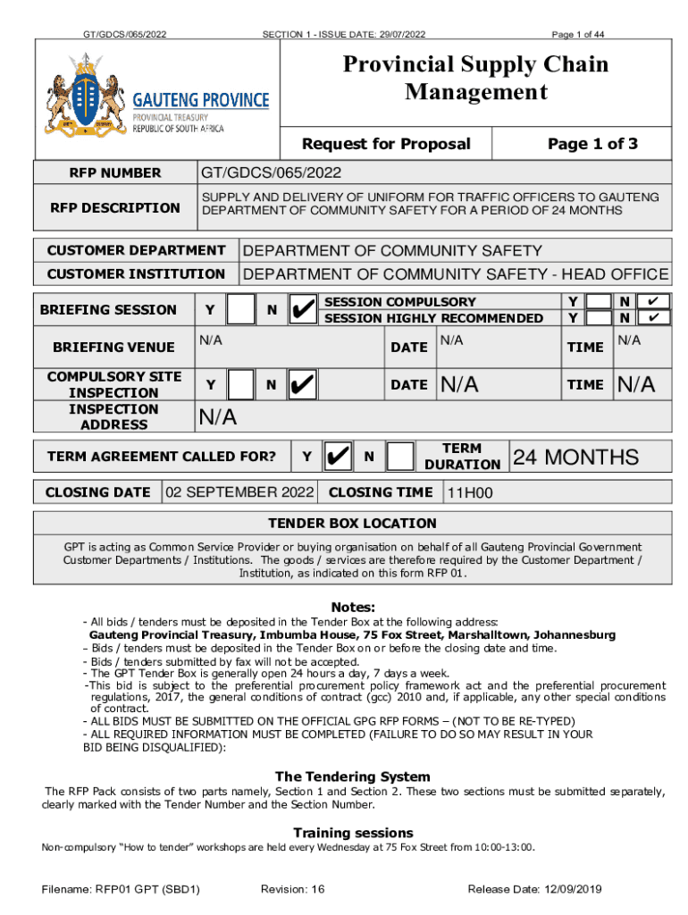 GT/GDS/065/2022SECTION 1 ISSUE DATE: 29/07/2022Page 1 of 44Provincial Supply Chain