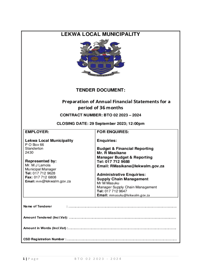 LEMMA LOCAL MUNICIPALITYTENDER DOCUMENT:Preparation of Annual Financial Statements for a