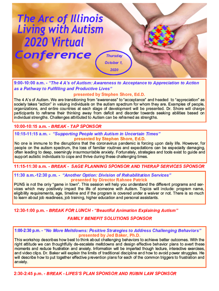 Thursday, October 1, 20209:0010:00 a.m. The 4 As of Autism: Awareness to Acceptance to Appreciation to Action as a Pathway to Fulfilling and Productive Lives presented by Stephen Shore, Ed. D. The