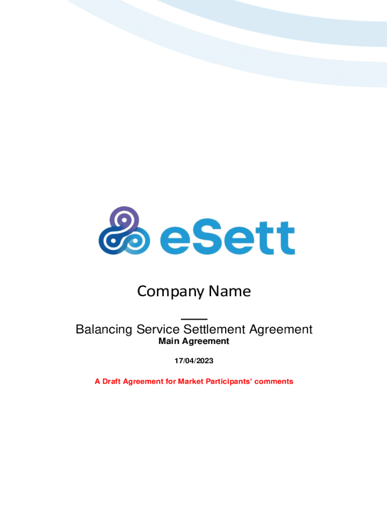 Company Name ___ Balancing Service Settlement Agreement Main Agreement 17/04/2023 A Draft Agreement for Market Participants comments217/04/2023Table of contents 1Parties32Definitions33Contract Documents44Background