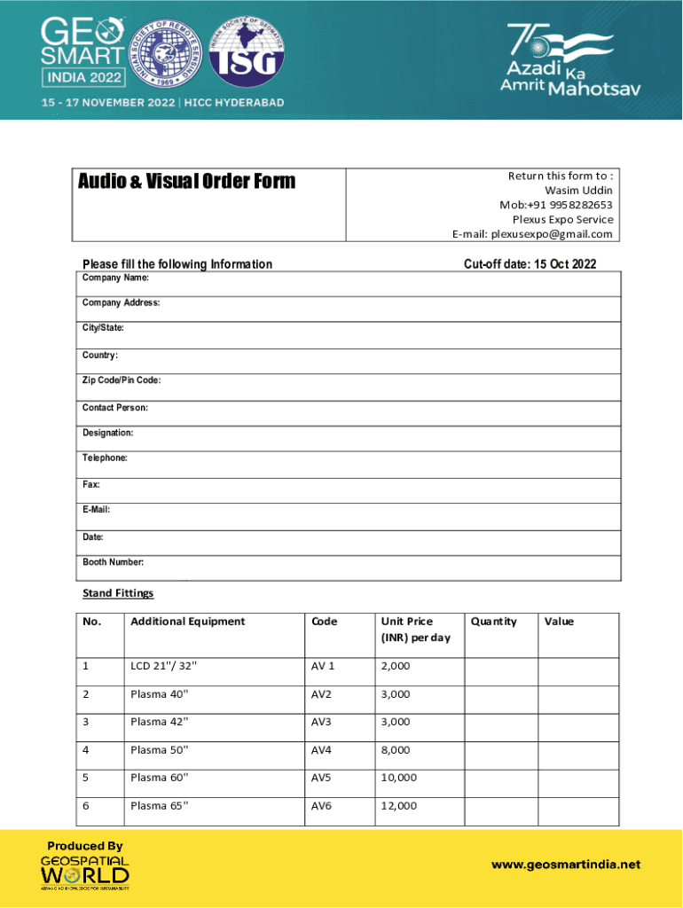 Email: plexusexpo@gmail.comPlease fill the following InformationCutoff date: 15 Oct 2022Company Name: