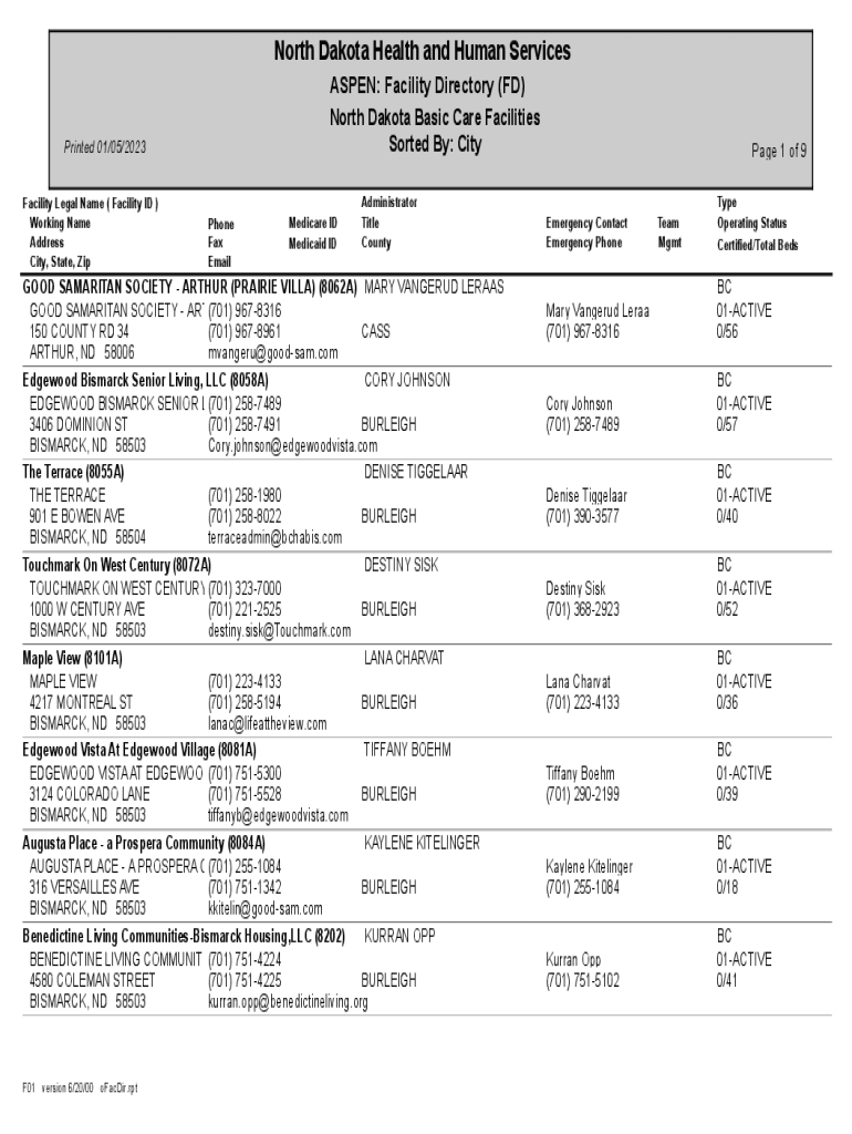 Get the free North Dakota Home Basic Care Facilities List