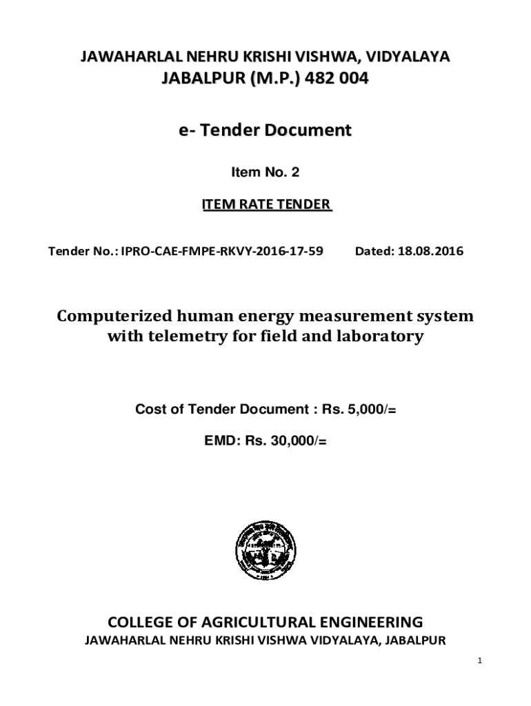 Get the free Tender Document SECOND CALL