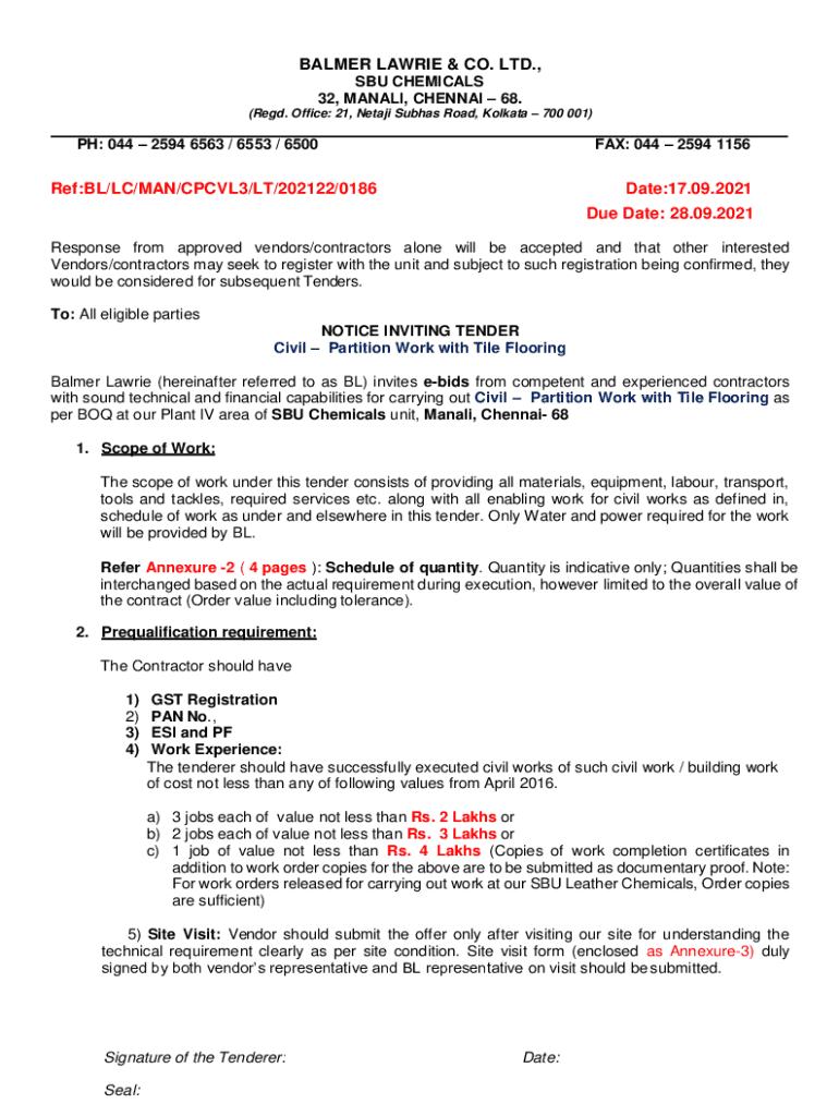 Get the free BALMER LAWRIE & CO. LTD., Ref:BL/LC/MAN/CPCVL3/ ...