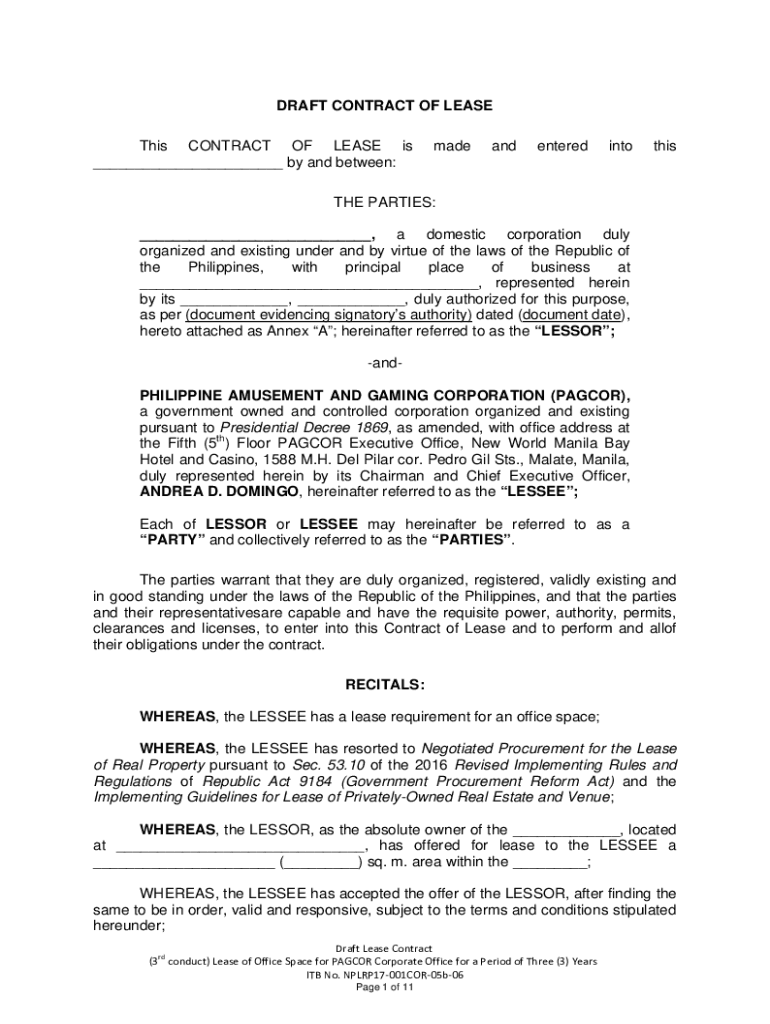 Draft Contract Of Lease is not the form you're looking for?Search for another form here.