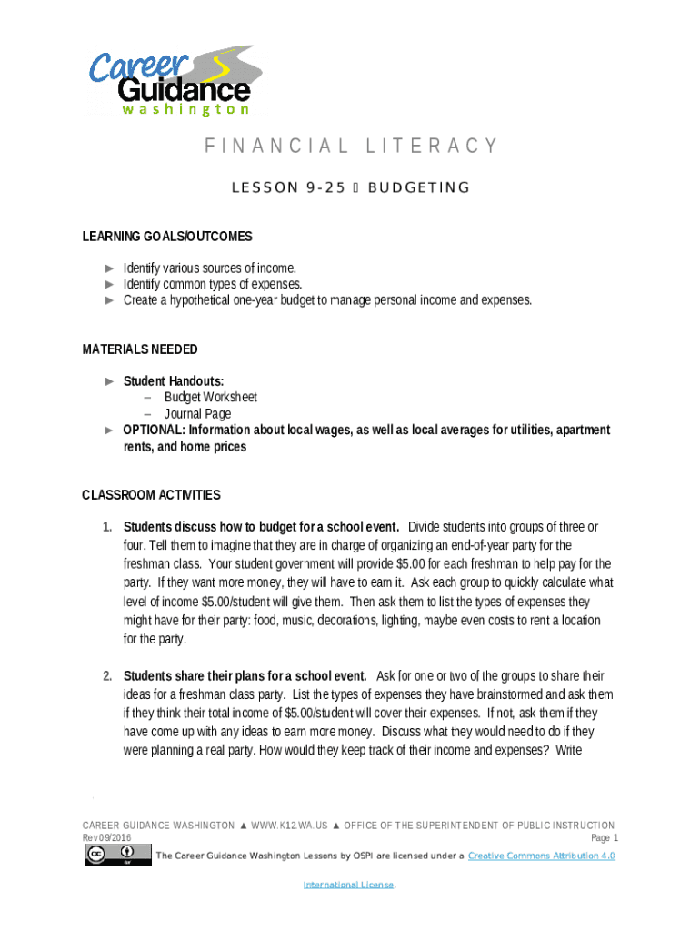 The Budgeting and Goal Setting - Financial Literacy - Yale University is a fillable form in MS Word extension which can be completed and signed for specific purposes. In that case, it is furnished to the actual addressee in order to provide some information and data. The completion and signing can be done in hard copy or with a trusted application like PDFfiller. Such applications help to send in any PDF or Word file without printing them out. It also allows you to edit it for your requirements and put a legal electronic signature. Once finished, the user sends the Budgeting and Goal Setting - Financial Literacy - Yale University to the respective recipient or several of them by mail and even fax. PDFfiller has got a feature and options that make your template printable. It has different settings when printing out. It does no matter how you distribute a form - physically or by email - it will always look well-designed and firm. To not to create a new file from the beginning over and over, turn the original Word file as a template. Later, you will have a customizable sample.