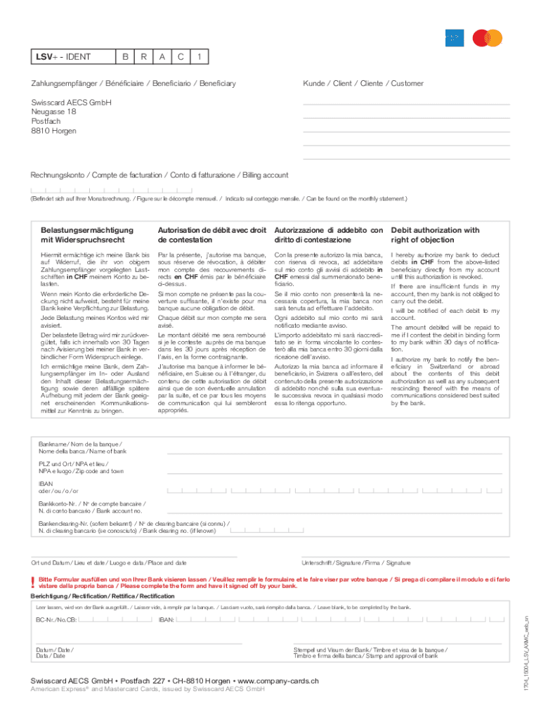 LSD+ IDENTBRAC1 Under / Client / Client / CustomerZahlungsempfnger / Bnficiaire / Beneficiaries / Beneficiary Swiss card ACS GmbH Negate 18 Postal 8810 HorgenRechnungskonto / Compete DE maturation