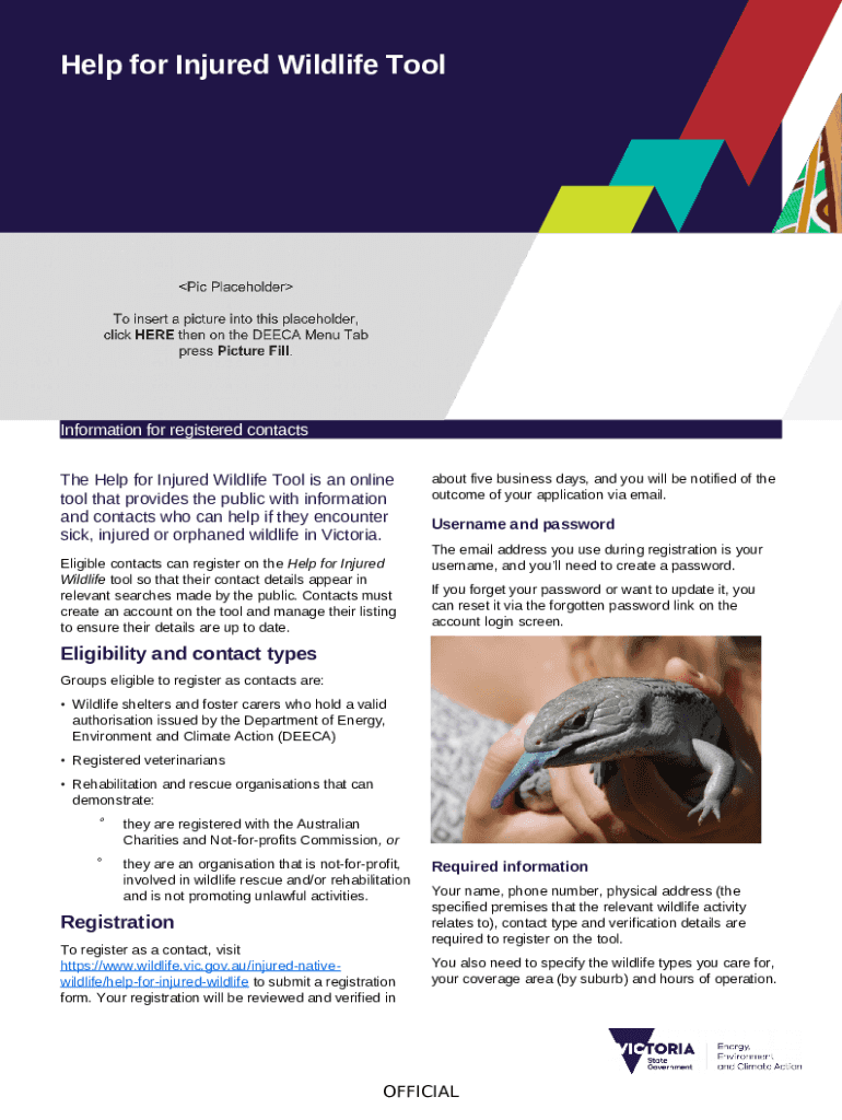 Service: Reporting Sick, Orphaned or Injured Wild Animals ... word template: frequently asked questions