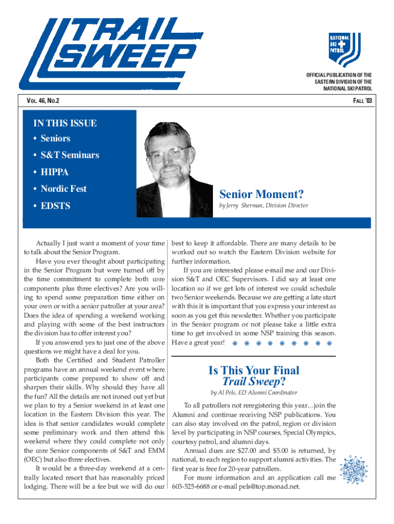 NATIONAL SKI PATROL. 46, NO.2FALL 03IN THIS ISSUE
