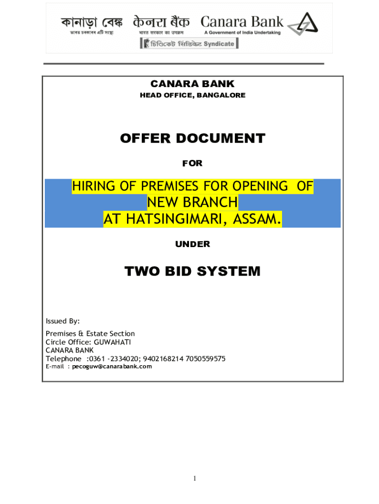 HEAD OFFICE, BANGALOREOFFER DOCUMENT