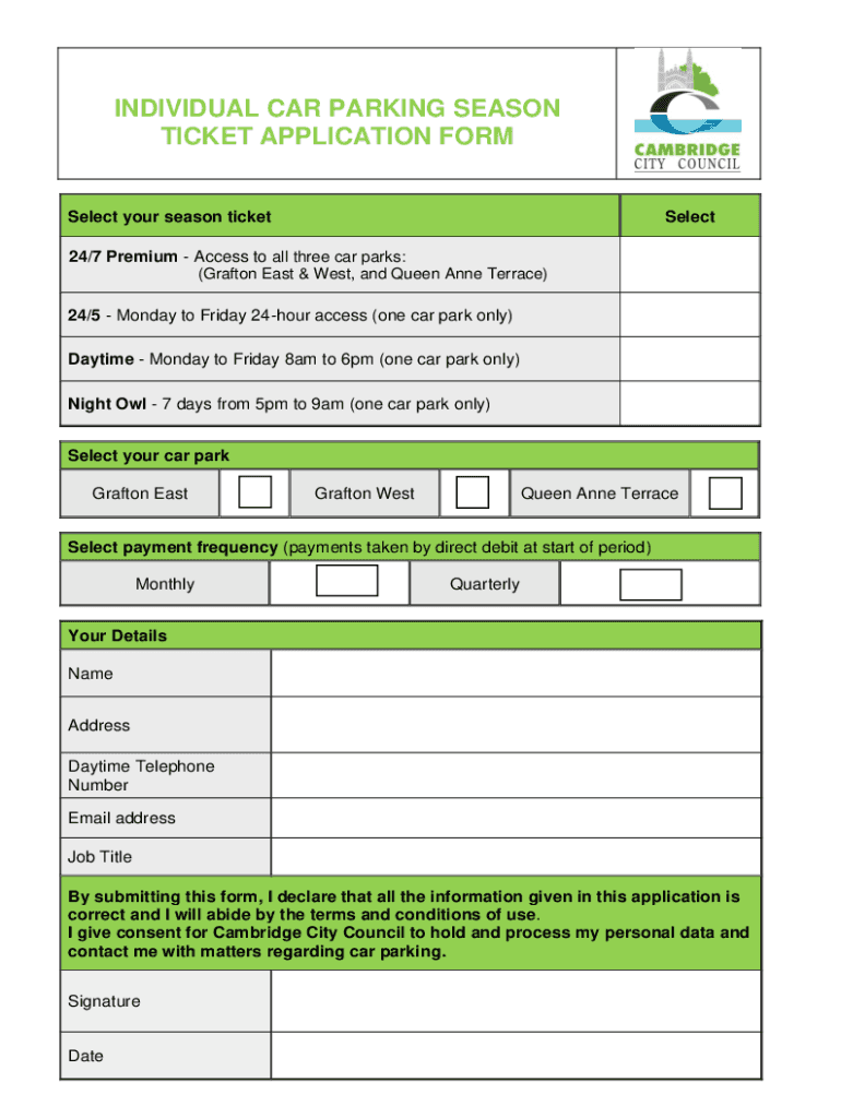 Get the free Business parking season ticket individual application - Cambridge City Council