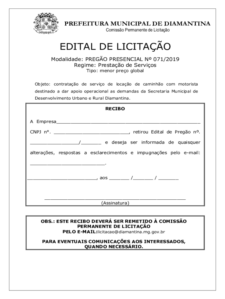 Obtenha o gratuito Objeto: contratao de servio de locao de caminho com motorista