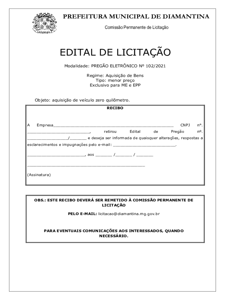 Obtenha o gratuito Objeto: aquisio de veculo zero quilmetro