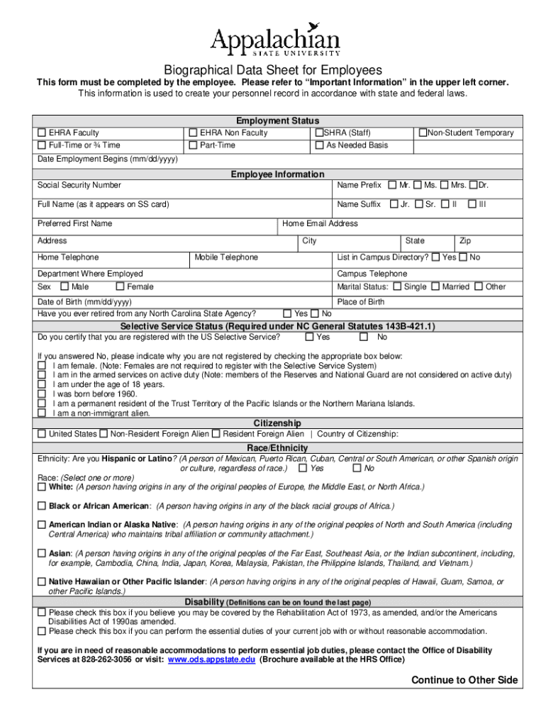Biographical Data Sheet for Employees