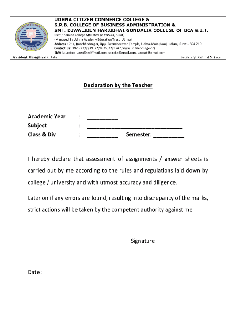 The management or authorities of Udhana Citizen Commerce College are required to file the necessary documentation.