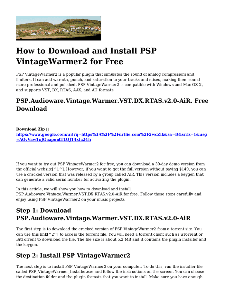 How to Download and Install PSP VintageWarmer2 for Free PSP VintageWarmer2 is a popular plugin that simulates the sound of analog compressors and limiters. It can add warmth, punch, and saturation