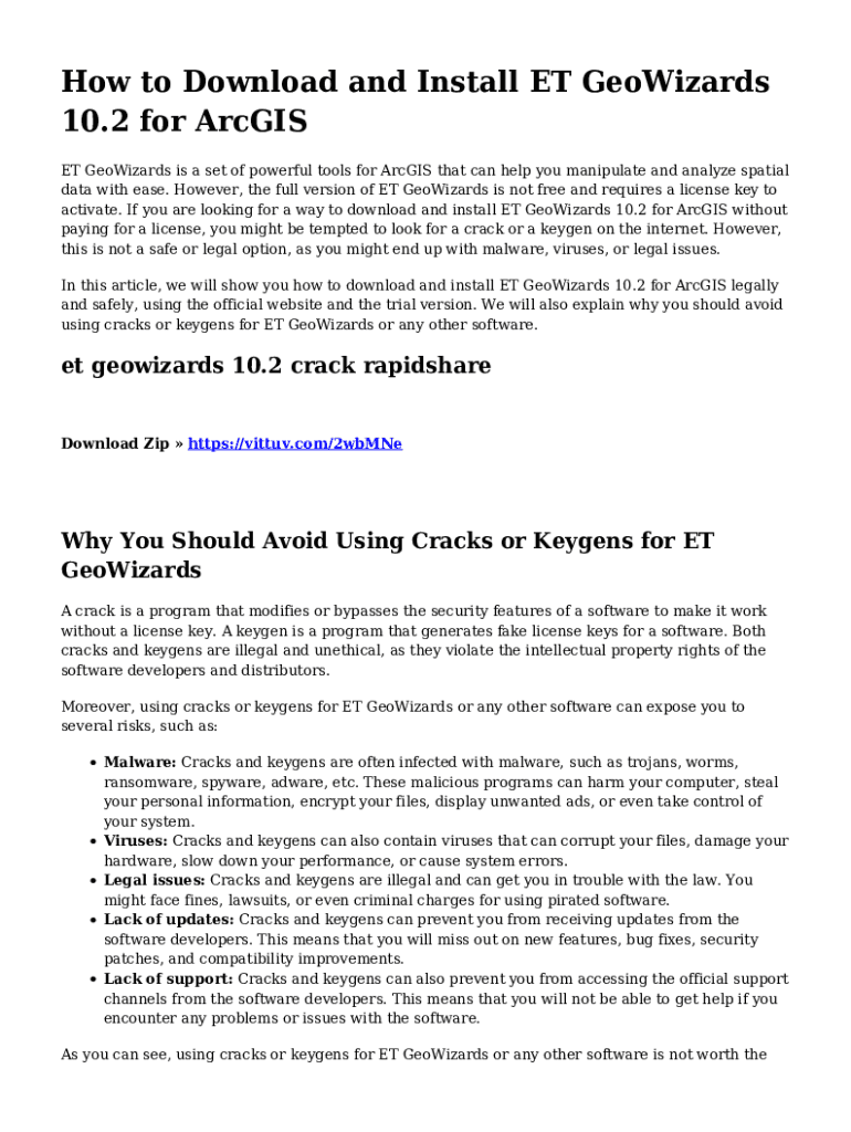 How to Download and Install ET Wizards 10.2 for Arc GIS ET Wizards is a set of powerful tools for Arc GIS that can help you manipulate and analyze spatial data with ease. However, the full version