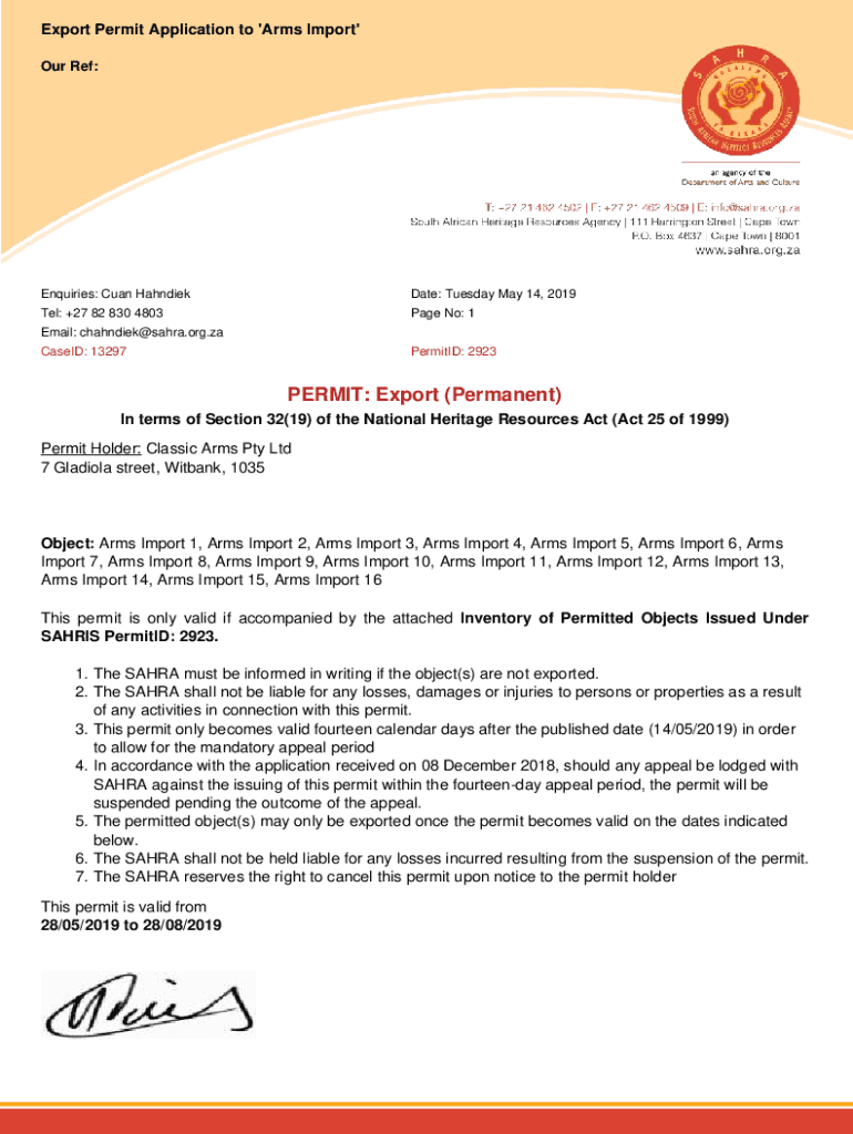 Our Ref:Inquiries: Can HahndiekDate: Tuesday, May 14, 2019Tel: +27 82 830 4803Page No: 1Email: chahndiek@sahra.org.za