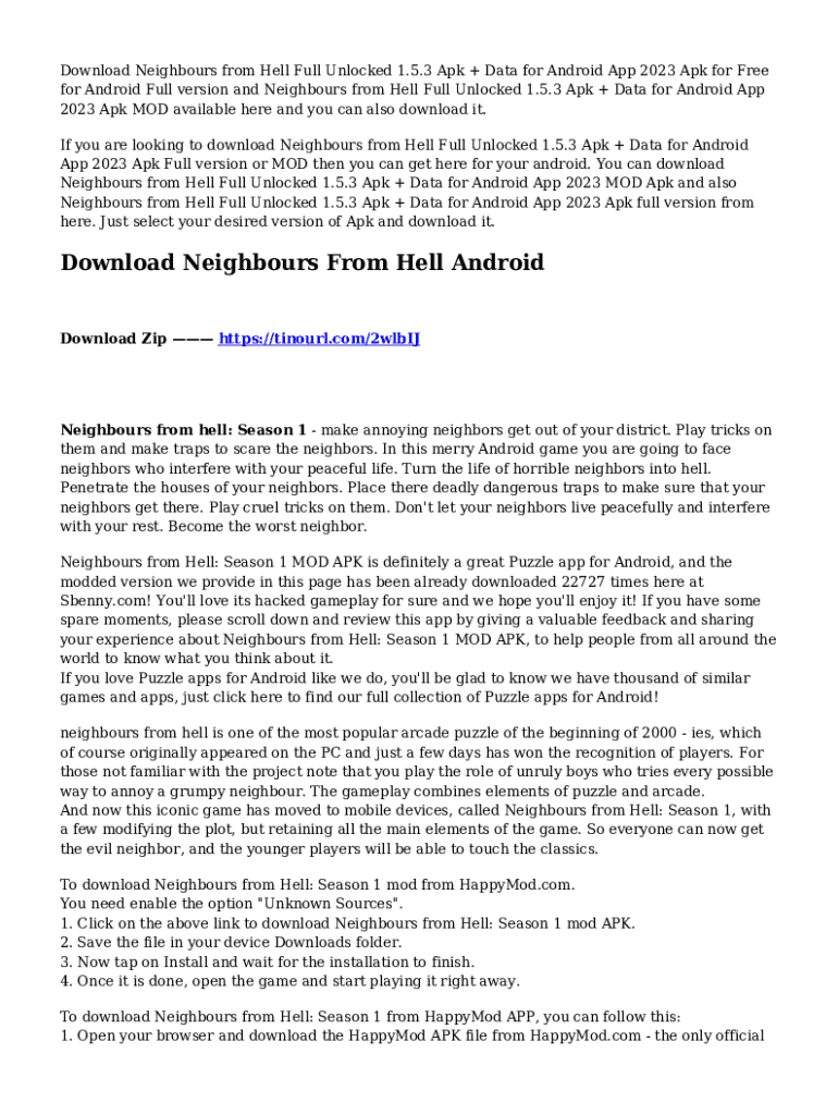 Get the free Neighbours from Hell Full Unlocked 1.5.3 Apk + Data for ...