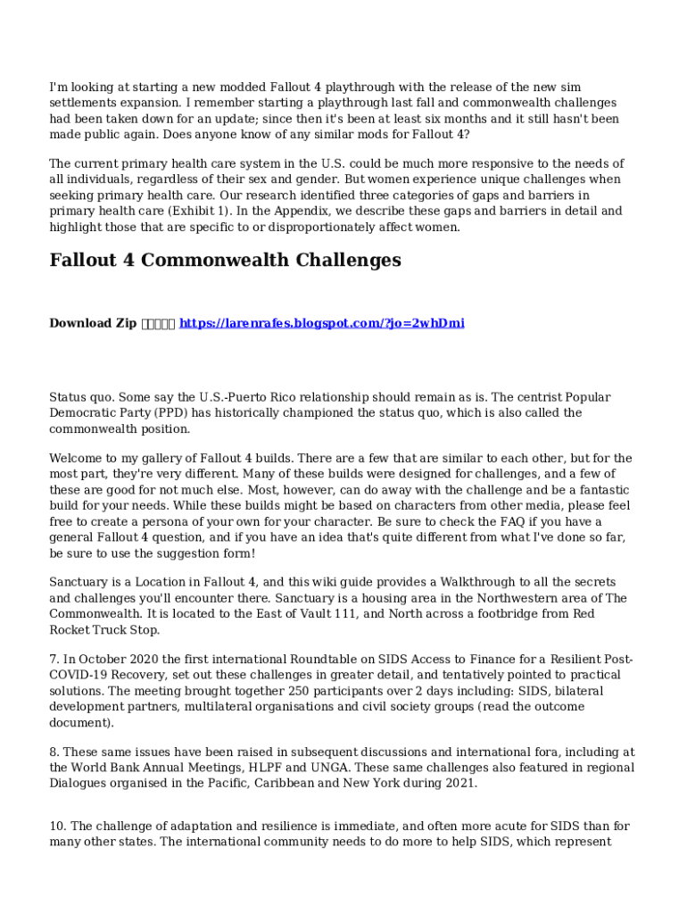 I\'m looking at starting a new modded Fallout 4 play through with the release of the new sim settlements expansion. I remember starting a play through last fall and commonwealth challenges had been